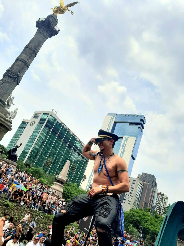 Neidan Macías no es ajeno a los caminos difíciles ni a las conquistas simbólicas. Fundador de la revista Translúcido —hoy disponible en Translúcido.net—, ha sido pionero en abrir espacios de representación para los hombres trans en los medios públicos. No solo apareció como el primer hombre trans en la portada de la revista BOYS.MEX, sino que también fue reconocido por el Congreso de la Unión con la Medalla al Mérito Turístico y nombrado Embajador Turístico de la Ciudad de México. Su andar no se limita a la producción o la comunicación: su trazo es político, afectivo y transformador, y esta marcha lo consagró como una de las figuras más importantes de la cultura LGBTIQ+ actual en el país.